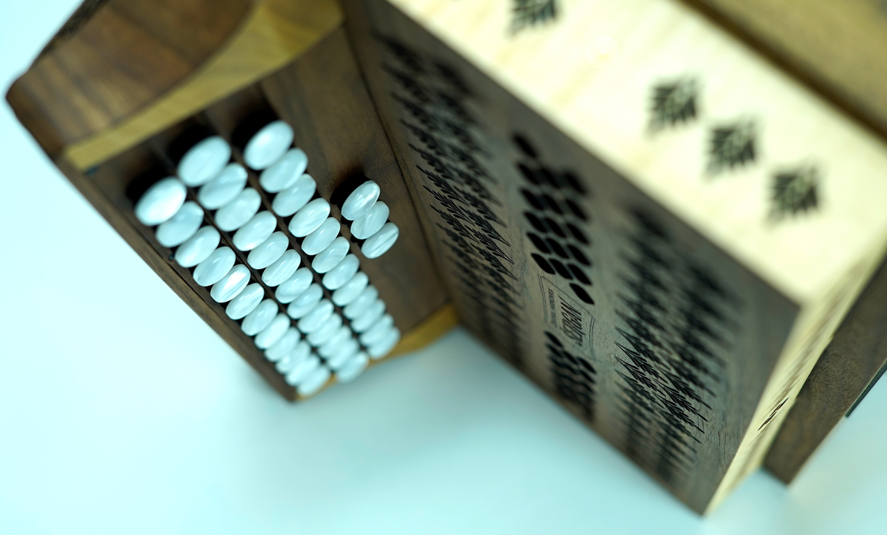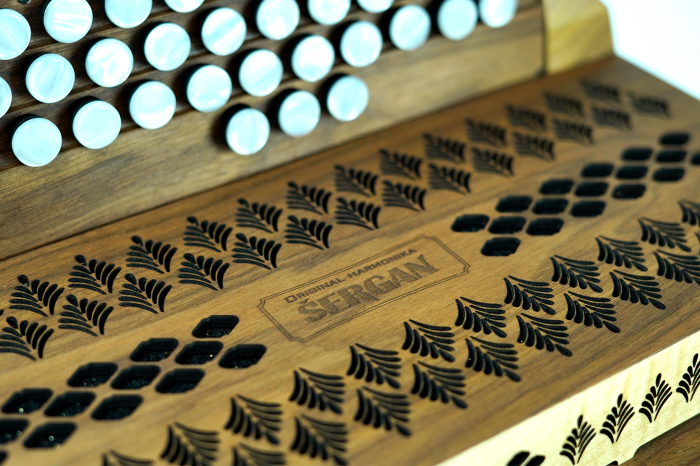 Harmonika je popolnoma nova. Porabi zelo malo zraka in ima prijeten mehak zvok, zahvaljujoč lesenemu pokrovu na zvočni plošči. Ima zelo odzivno mehaniko, ki odlično tesni. Harmonika ima dvojni sapnik, kar pomeni, da je odpiranje in zapiranje meha zelo hitro in lahko.