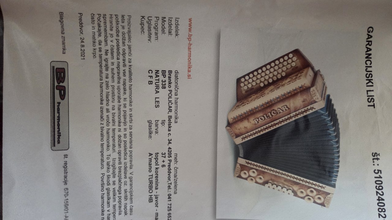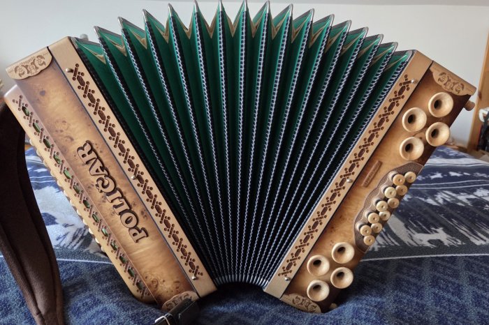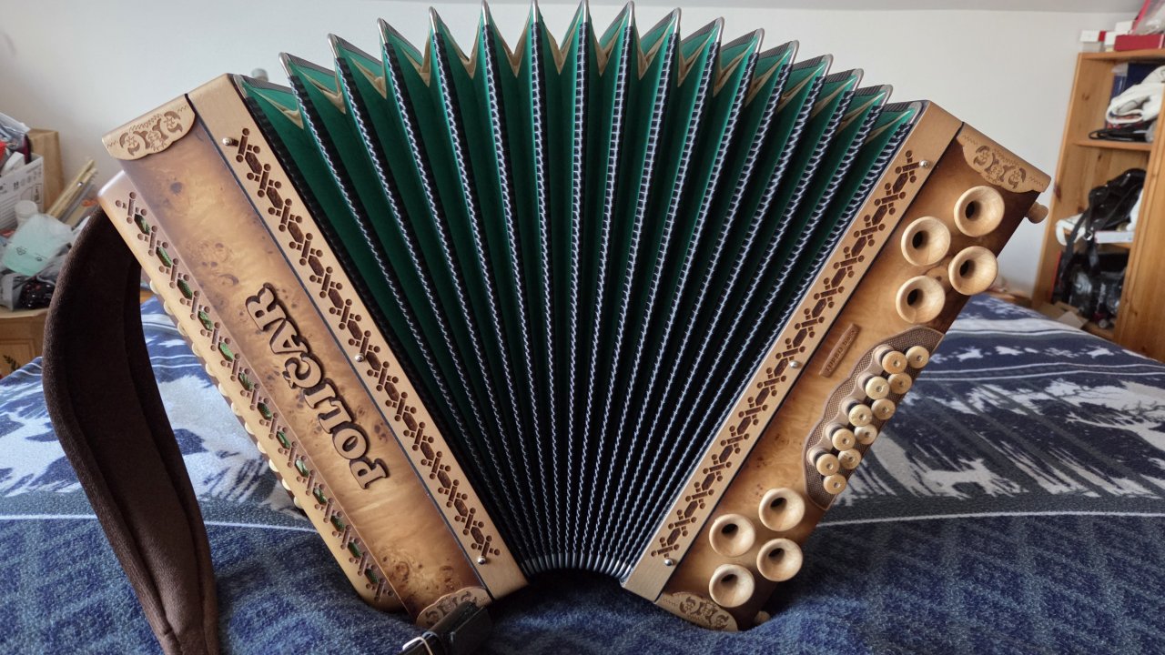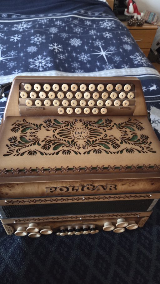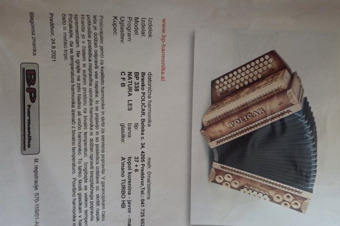 Prodam ali menjam harmoniko Poličar natur profi. Harmonika bo na novo oglašena in servisirana in je kot nova brez napak. Ima turbo base zelo močne.Zelo lepo zveni in je izredno lahka 0.60 kg lažja od vse konkurence.Harmoniko prodam ali menjam za harmoniko Munda cfb 38 velikosti najraje mintra z mojim doplačilom.