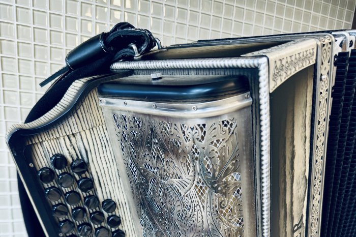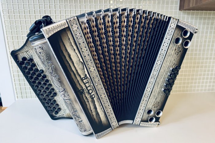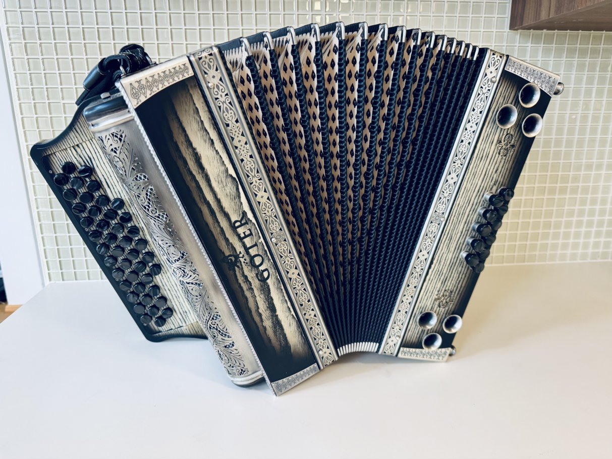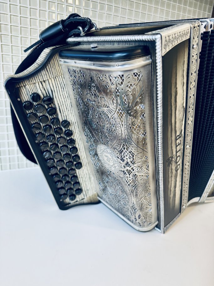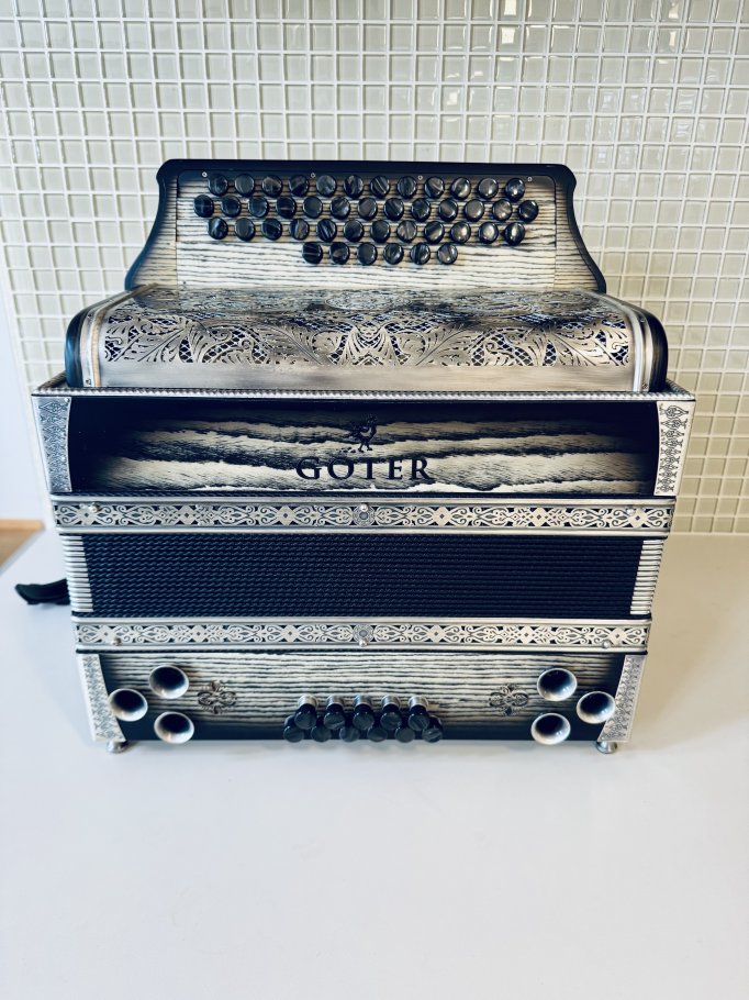 Prodam vrhunsko harmoniko GOTER Black and white, uglasitev CFB, odlično ohranjeno, z neverjetnim zvenom in močnimi basi. Harmonika ima 6 poltonov in zven, da ga vikaš.